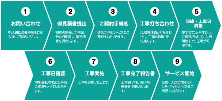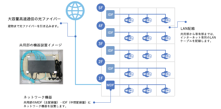 集合住宅向けISPシステムの設備かを共用部分から宅内まで一括設置いたします。
