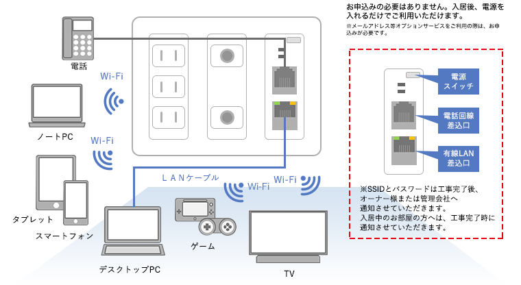 無線Wi-Fiでシーンに合わせたインターネットのご利用が可能です。
