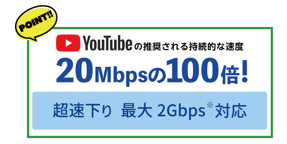 ※上記の通信速度はいずれもベストエフォート型サービスです。記載の速度は技術規格上の最大値であり、実使用速度を示すものではありません。お客さまのご利用環境、回線の状況などにより大幅に低下する場合があります。通信速度は記載時点の最大通信速度であり、今後、速度低下も含め、変更になる可能性があります。
