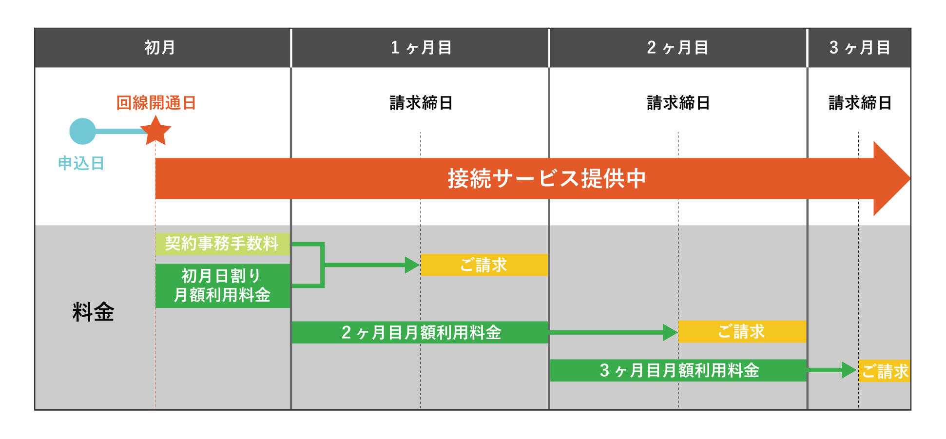 ・ご利用開始月の日割料金は、回線開通日からのご請求となります。