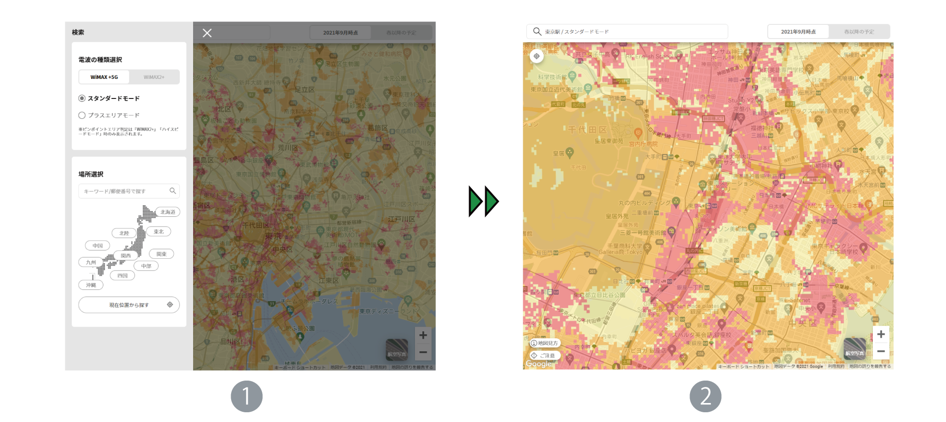 | プラスエリアモード (オプション利用料:1,100円) |